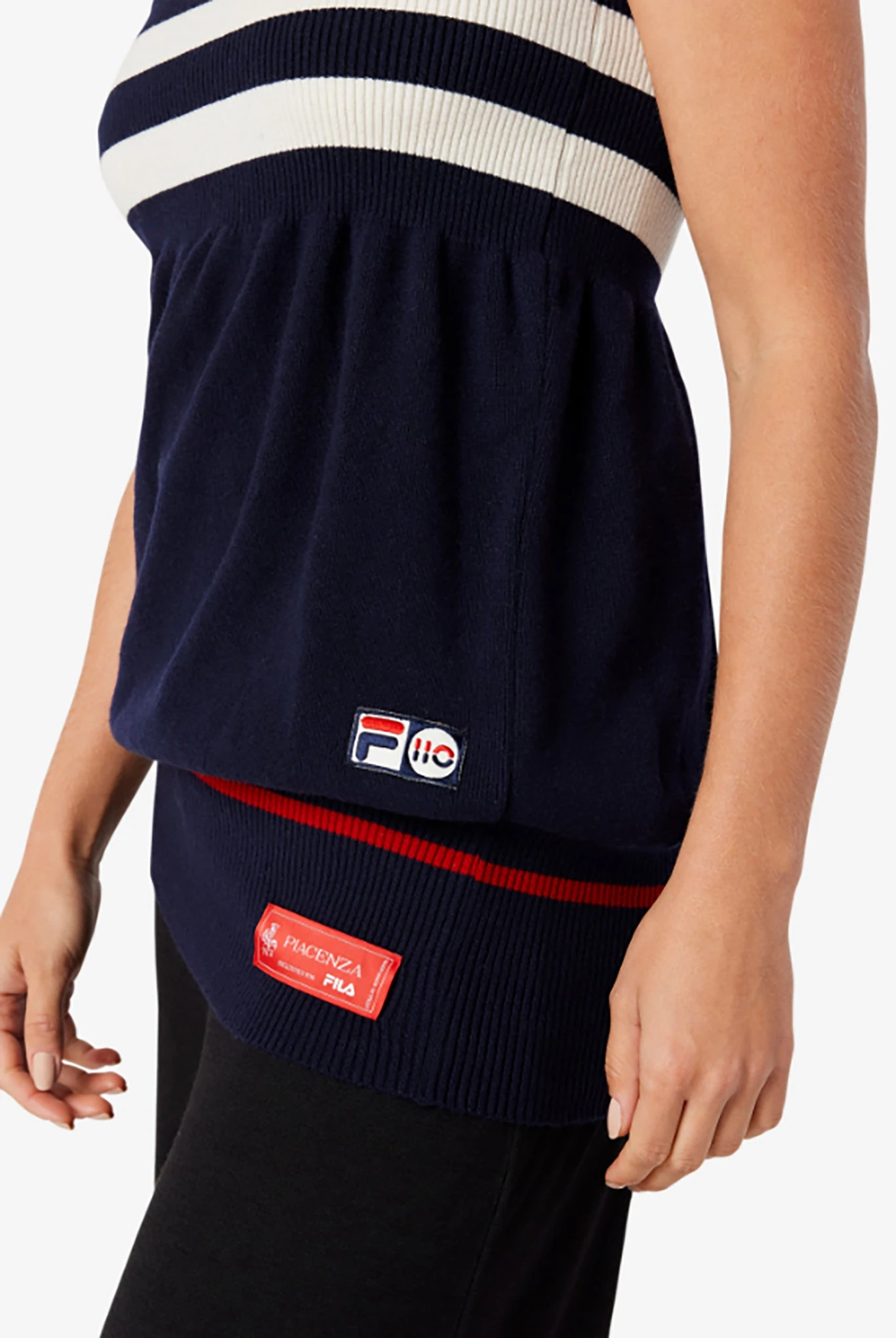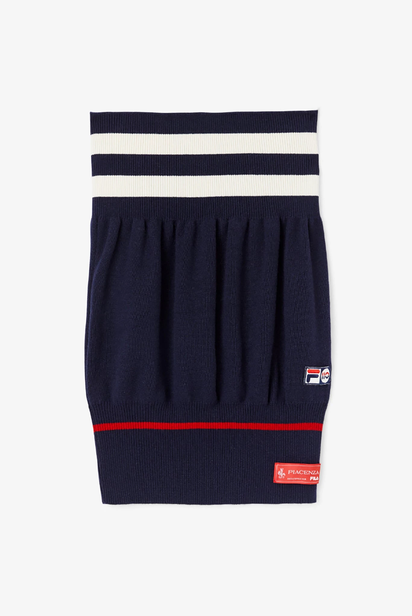 Developed in 1935, this patented NOBELT girdle is distinctive from the MABY underwear production. Tight yet comfortable, and almost invisible yet highly-reshaping worn, it turns today into a multifunctional accessory in FILA’s trademark colors. Warm and soft, it can be used as a top, a skirt, or a neck warmer.