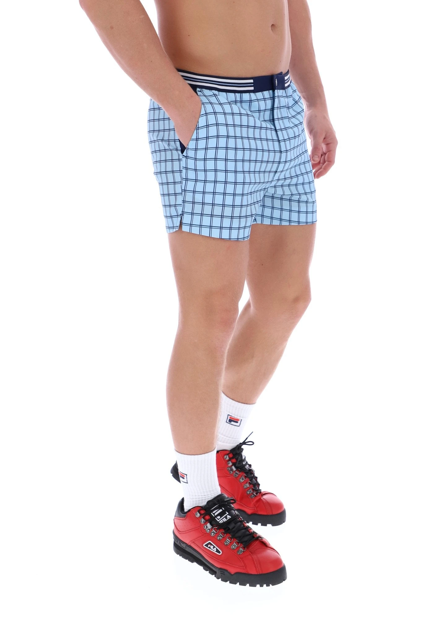 Introducing the FILA Brookes Check Short with Contrast Pocket and Stripe Waistband – a fresh and modern interpretation of classic sportswear. These shorts seamlessly blend a timeless check pattern with contemporary design details, making them a standout addition to your casual wardrobe.