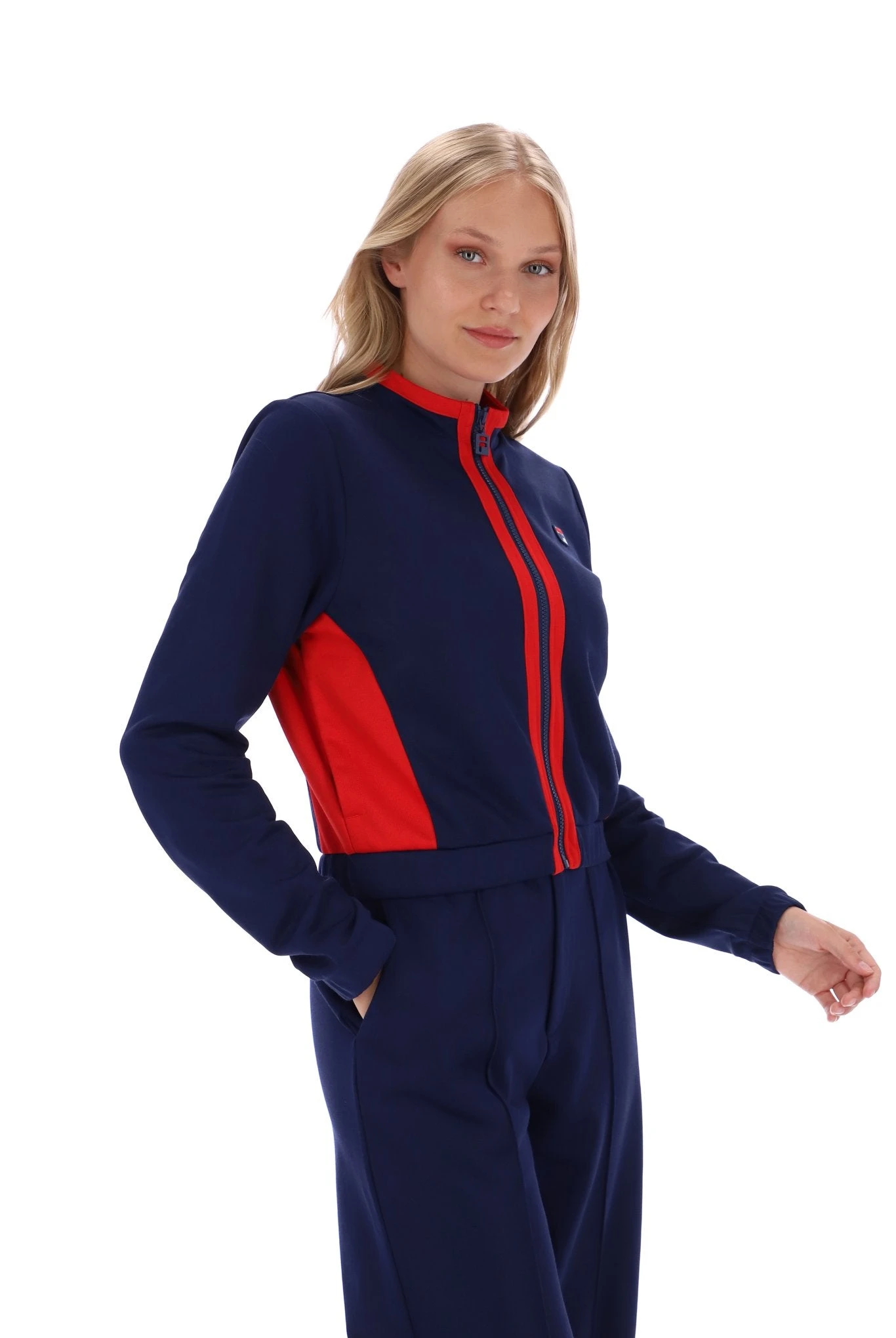 Introducing the FILA Grason Colour Block Zip Through Track Jacket – a contemporary take on classic sportswear that effortlessly merges style with functionality. Elevate your activewear collection with this track jacket that showcases a bold color-block design and signature FILA detailing.