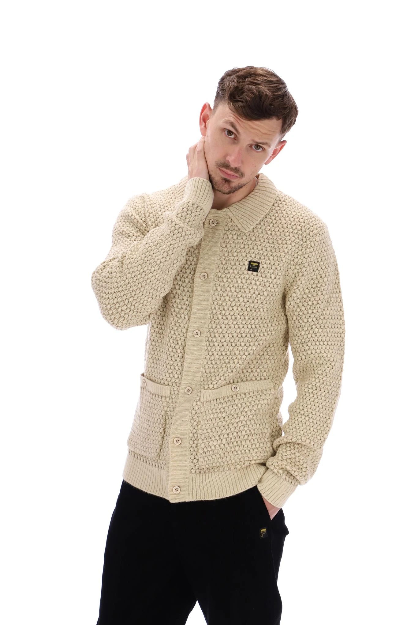 Upgrade your winter style with the FILA Maso Waffle Knit Cardigan and experience the perfect fusion of classic design and modern comfort. Whether you’re heading to a casual gathering or a special occasion, this cardigan is for you. Explore the new GOLD collection now.