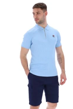 The pannuci slim fit polo with gold details features 1/4 zip up, short cap sleeve and FILA logo on chest. Made from 100% soft cotton fabric.