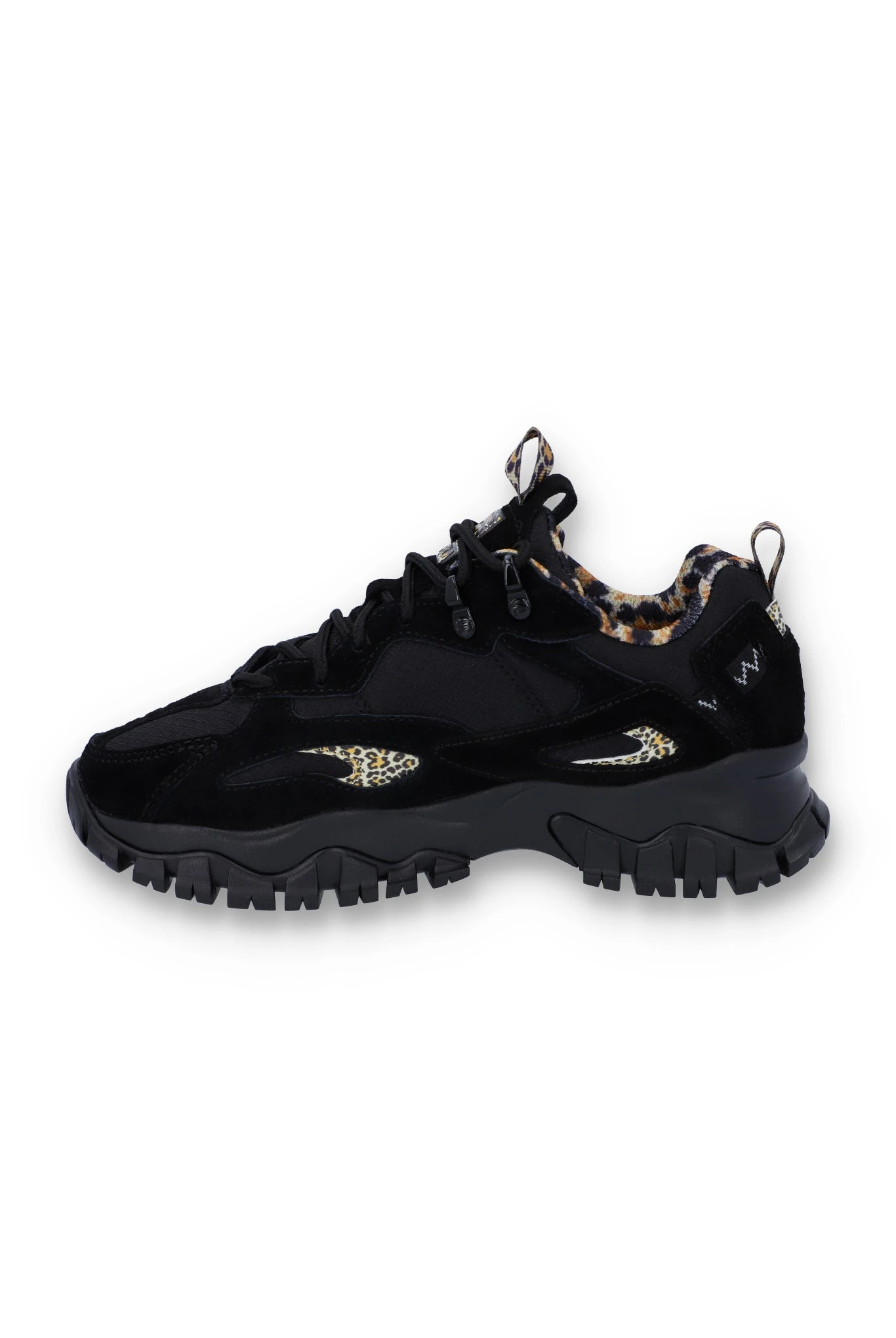 A FILA UK web exclusive style! One of our favourites this season, the Ray Tracer TR2 trainers in a cool black/animal print colourway are the epitome of streetwear style. Perfect as the weather starts to turn, these shoes come with a thick grippy sole. Finished with pull tabs for ease of putting on and the FILA logo on the side.