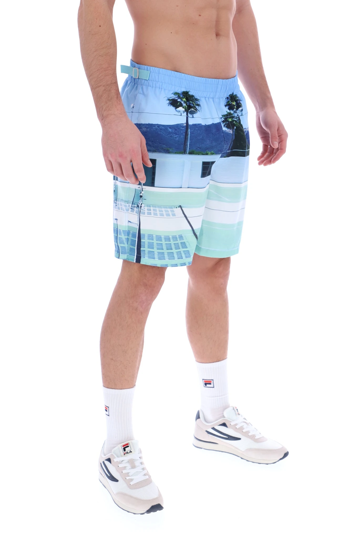 Make a splash in style with our VITO Photographic Long Swim Shorts. These shorts feature a striking photographic print that is sure to turn heads at the beach or pool. Made with a quick-drying, lightweight fabric, these shorts are perfect for a day of swimming and lounging in the sun. The elastic waistband and drawstring provide a secure fit, while the side pockets offer convenient storage for your essentials. The mesh lining provides added support and comfort. Pair with the VITO shirt for the full beach day look.